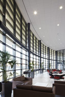 The doors were also supplied by Technal - the CD system was specified in both an automatic sliding configuration for the main entrances and as hinged doors for the fire exits.